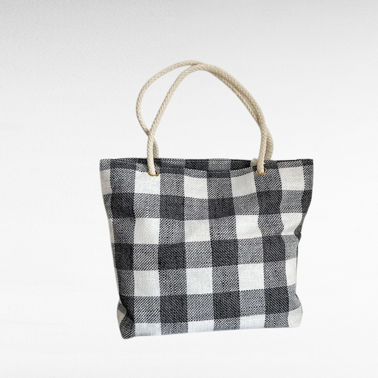 Big Plaid Canvas Tote Bag, Spacious Shoulder Handbag